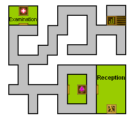 Après la scène, sortez de l'infirmerie et allez tout droit devant vous (vers l'ouest) et prenez la dernière porte pour accéder au passageway.